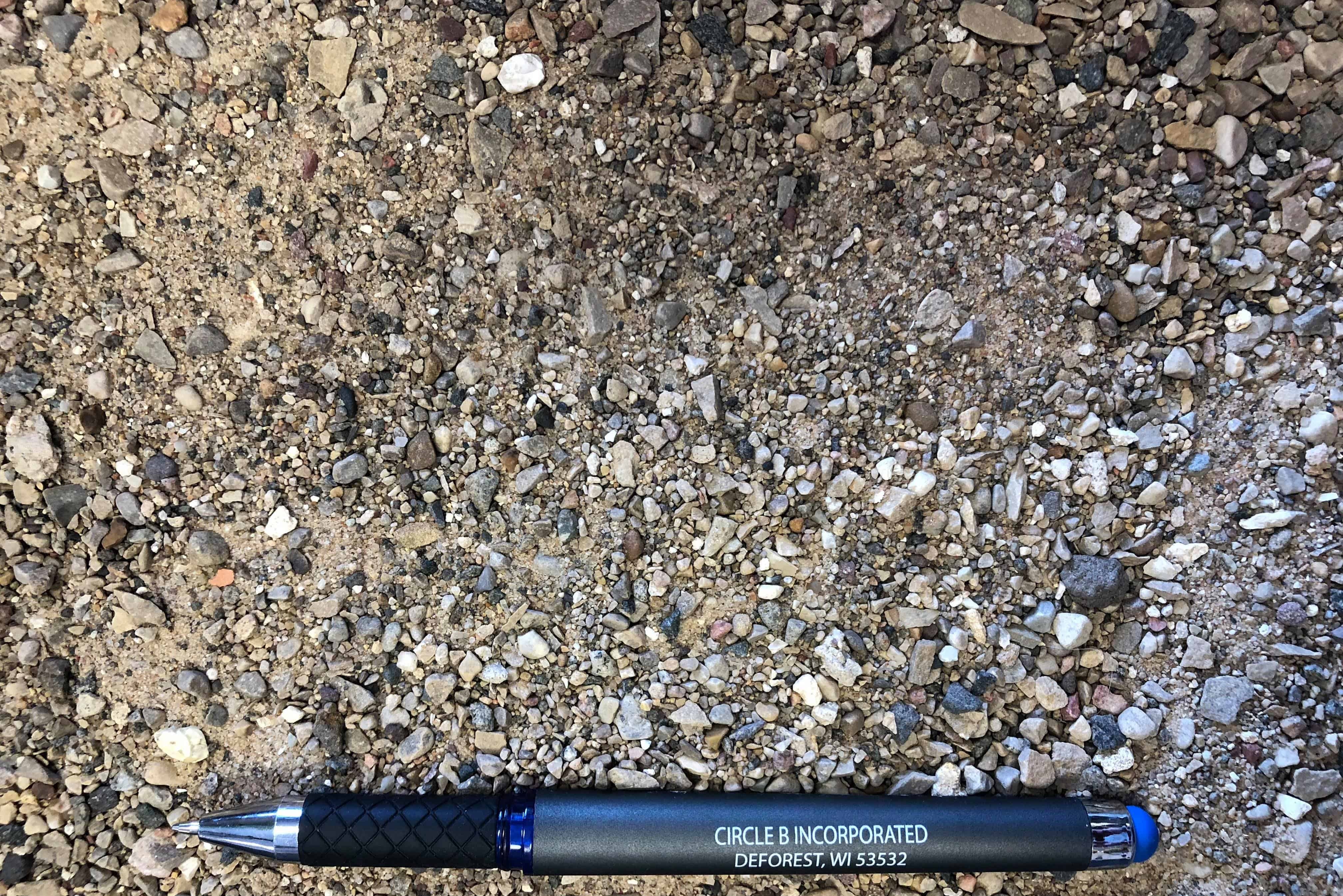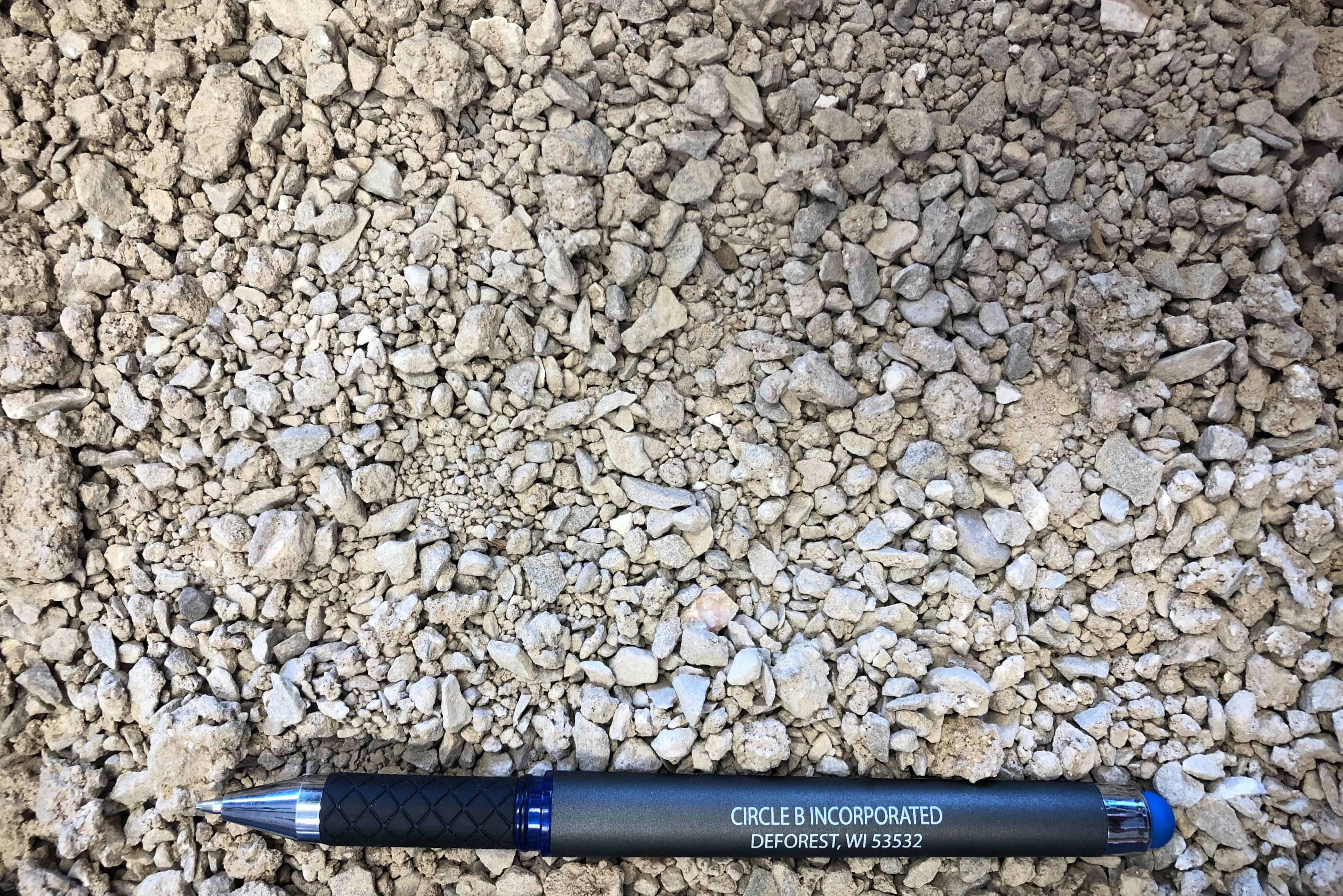 - Gravel (With Fines): ¾” size crushed limestone gravel with fines. Packs down well to form a solid layer of gravel. Preferred for gravel pads, a base for underneath pavers, and for driveways.
