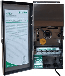 - XF600 – Features: 600 watts, 5 amps,120 volts, secondary voltage: 12-18 volts*, available voltage taps: 12, 13, 14, 15, 16,17,18. Exterior Construction: Stainless Steel
